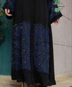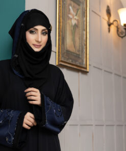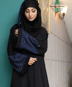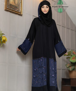 Abaya H-36: This Beautiful designed abaya with hand embellishment & other detailing makes it look gorgeous, combination of black/ blue color makes it look complete. Black Sheila is included.