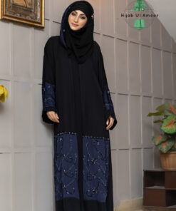 Abaya JS-826: This stylish abaya is fancy in look with buttons on neckline, piping on upper body and sleeves which makes it look elegant. Simple & delicate best for daily use, chiffon hijab is included.