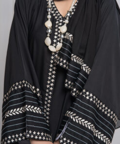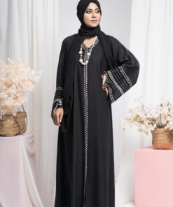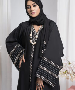 Stunning and Gorgeous Art design embroider article on front as well sleeves with baggy style elegance with front open and fancy look and delicate best Art design which make it look classic chiffon hijab is included. Fabric ” NIDAH Care: 30° C Mild Wash, Do Not Bleach, Do Not Bleach, Do Not Tumble Dry, Cool Iron, Professional DryClean