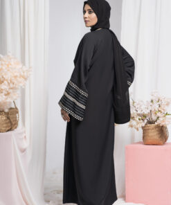 JS-854 Elegant Embrace Stunning and Gorgeous Black Abaya with Beautiful Art design embroidery at sleeves and front.