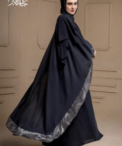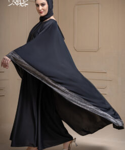 Embrace timeless elegance with a touch of intrigue in our captivating black stonework farasha abaya, complemented by a flowing black chiffon dupatta. This alluring piece is designed to flatter your silhouette and exude an air of mystery, making it a captivating addition to your modest wardrobe.
